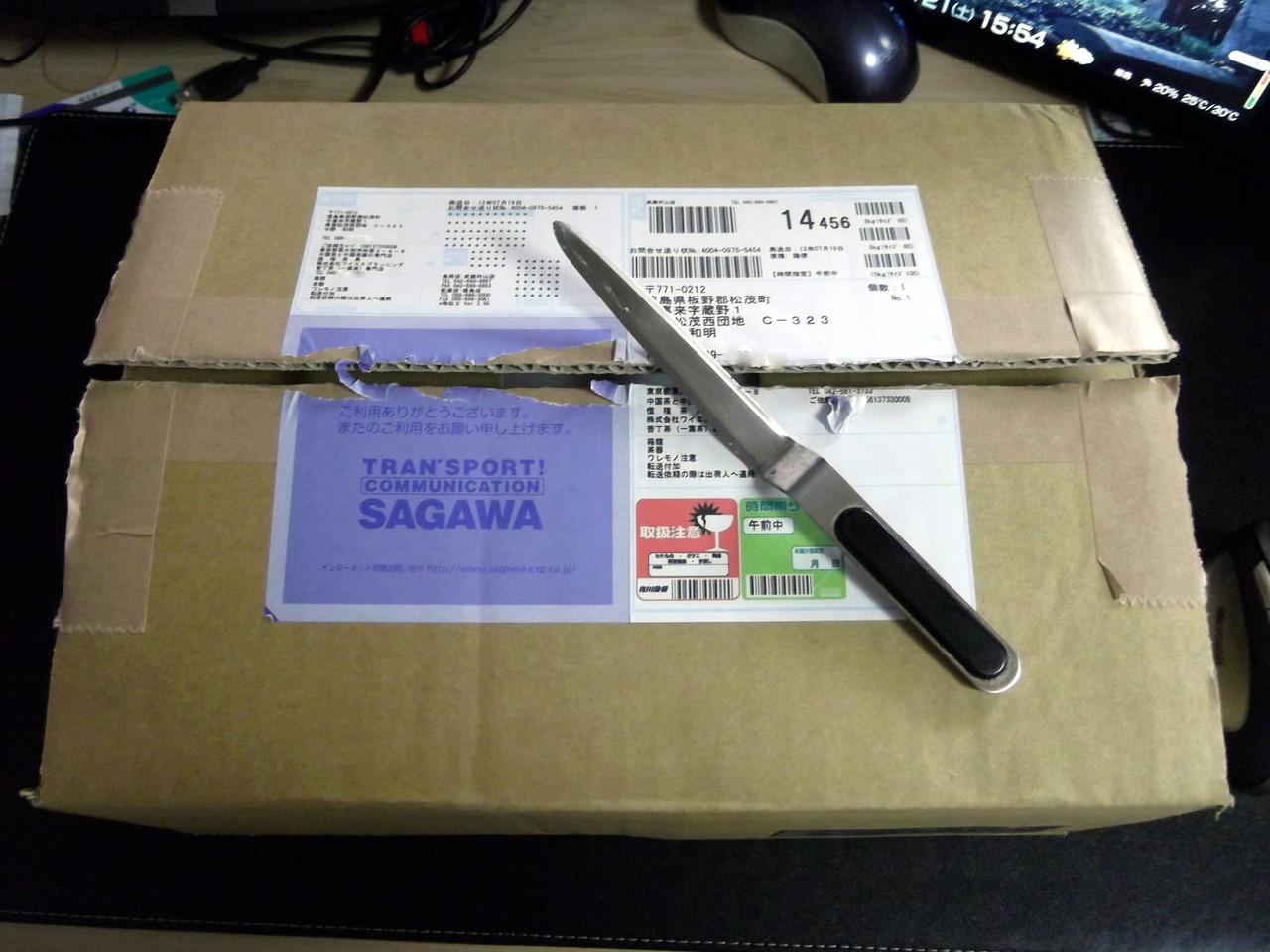 ペーパーナイフを使ってガムテープを切っていき…