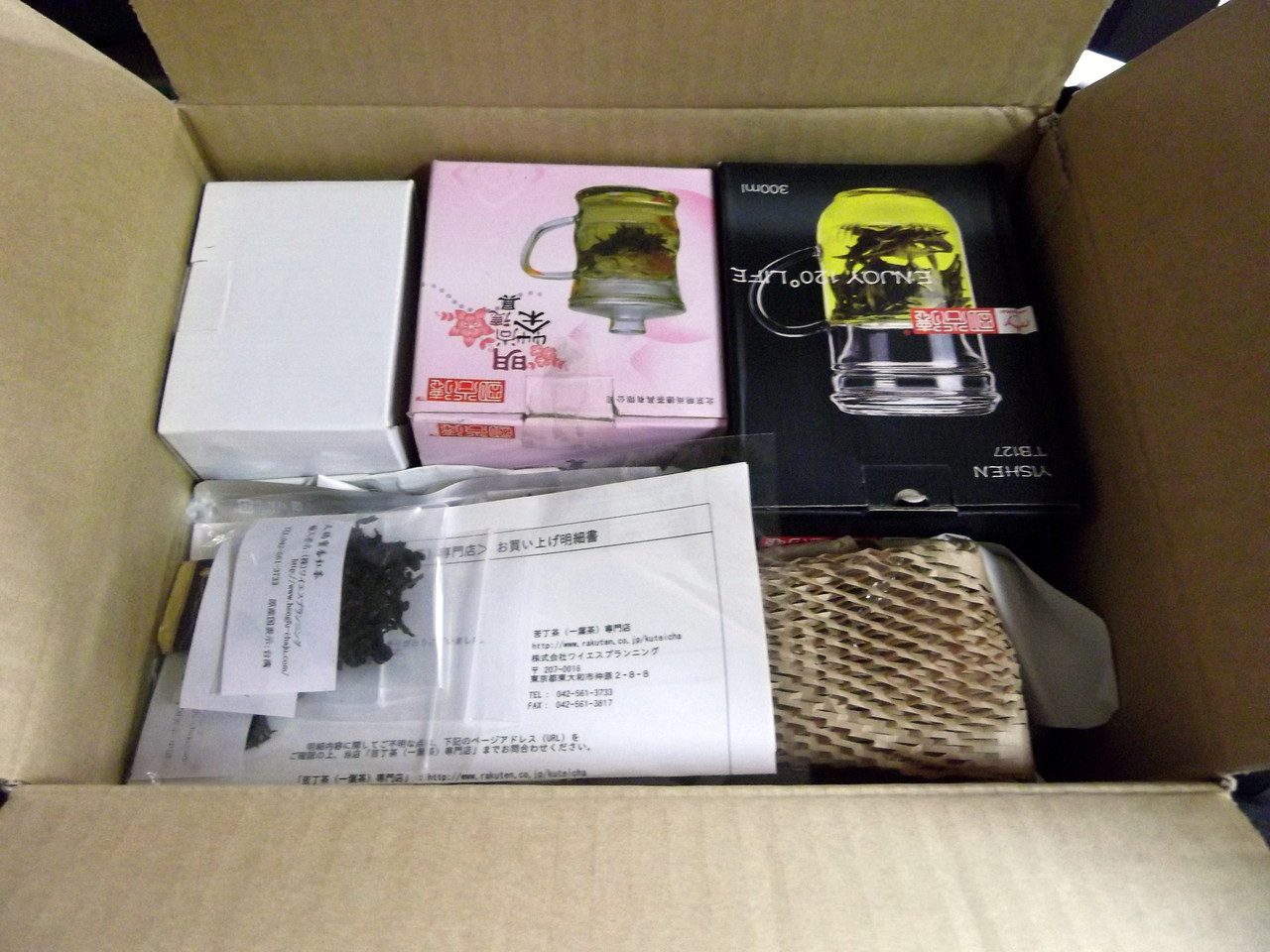 今回の発注では、茶器を3つと、茶葉を適当に詰め合わせてみました。